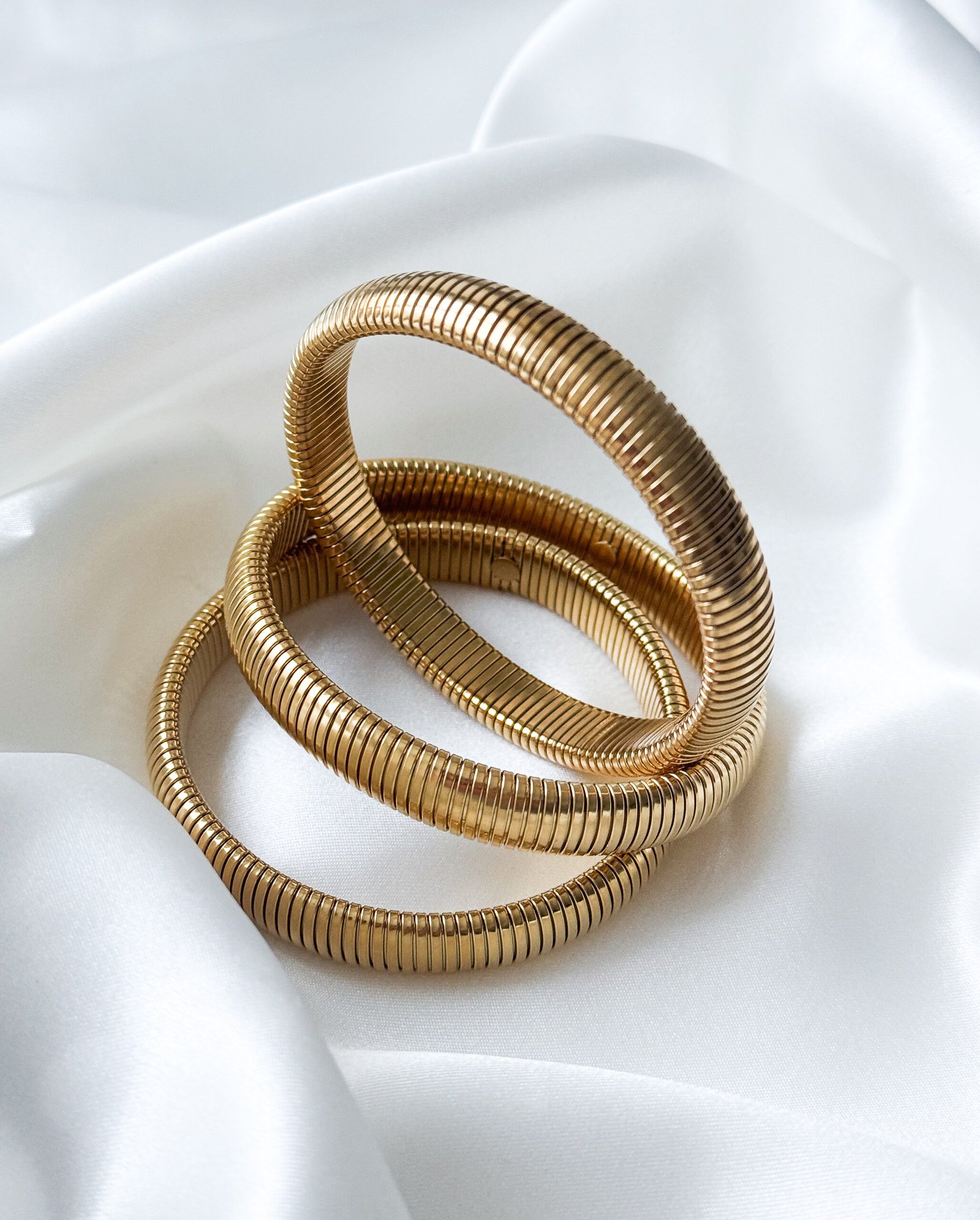 Išraiškingos, masyvios ir modernios – plonesnės auksinės spalvos apyrankės. Lygios, elastingos – tuboga tipo apyrankės – atrodo itin prabangiai ir glotniai apsiveja aplink riešą, suteikdamos įvaizdžiui dinamos ir drąsos. Dėvėkite vieną ar kelias – efektas visada bus įspūdingas ir stilingas.