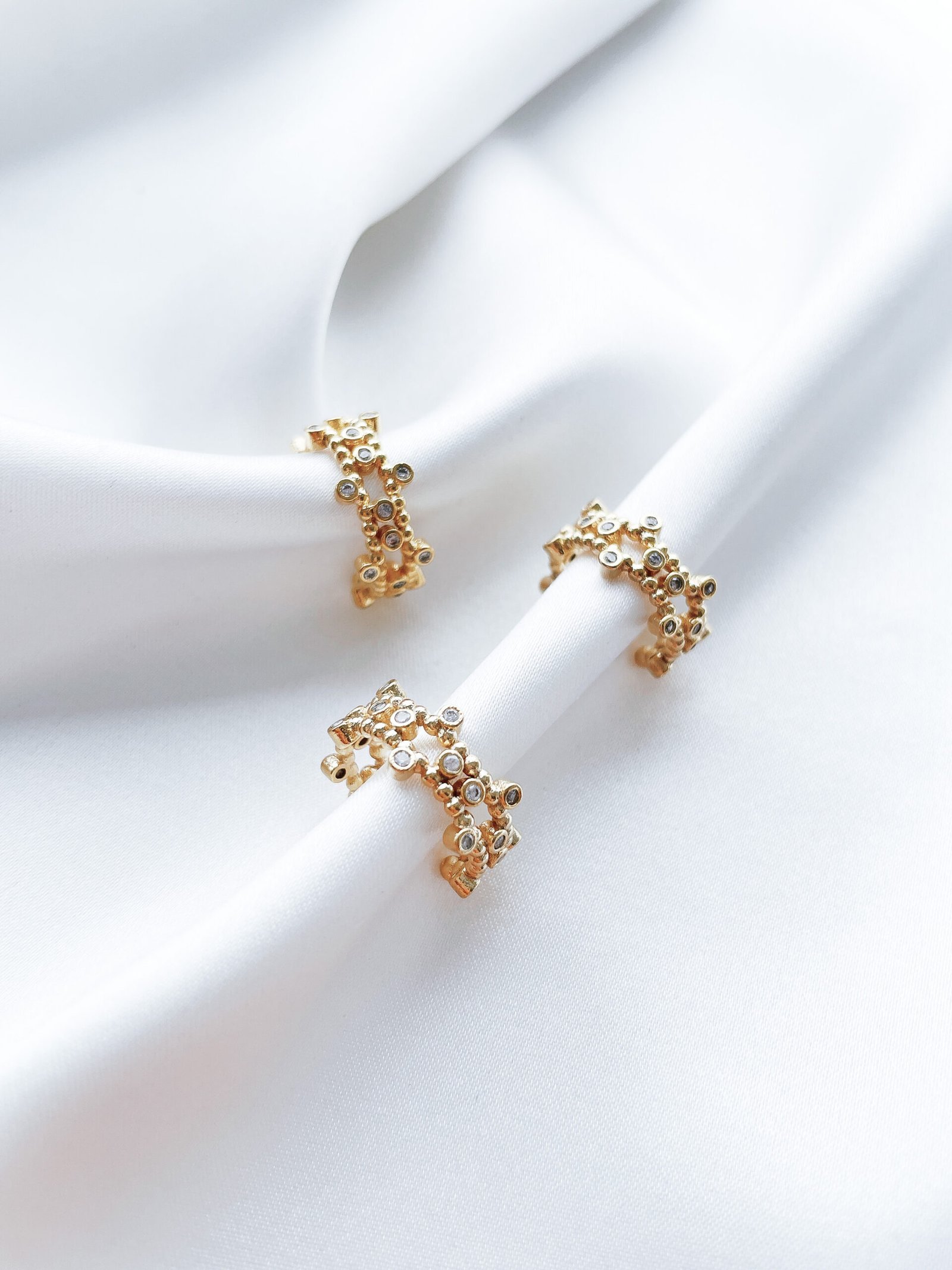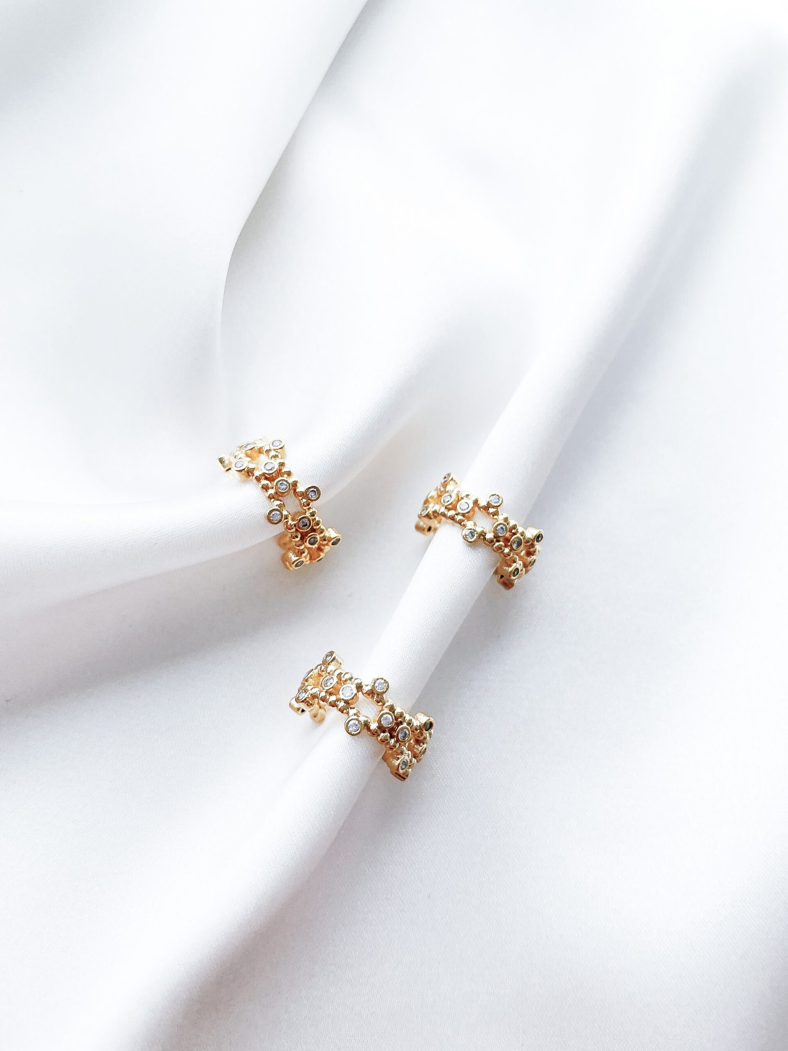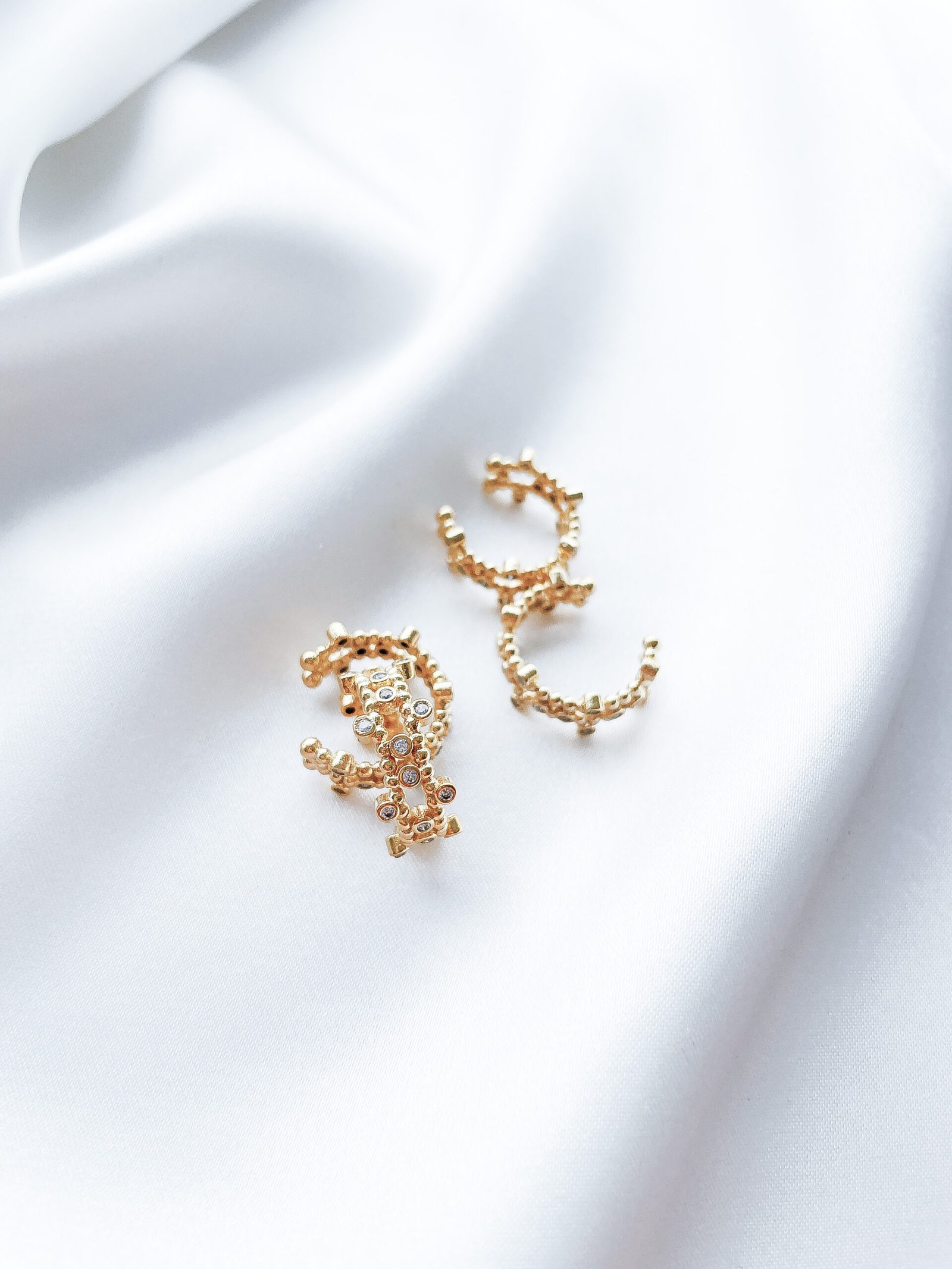 Lengvai derinamas 24k paauksuotas Ear Cuff su cirkonio akutėmis. Puikiai tinka auskarų sluoksniavimui.