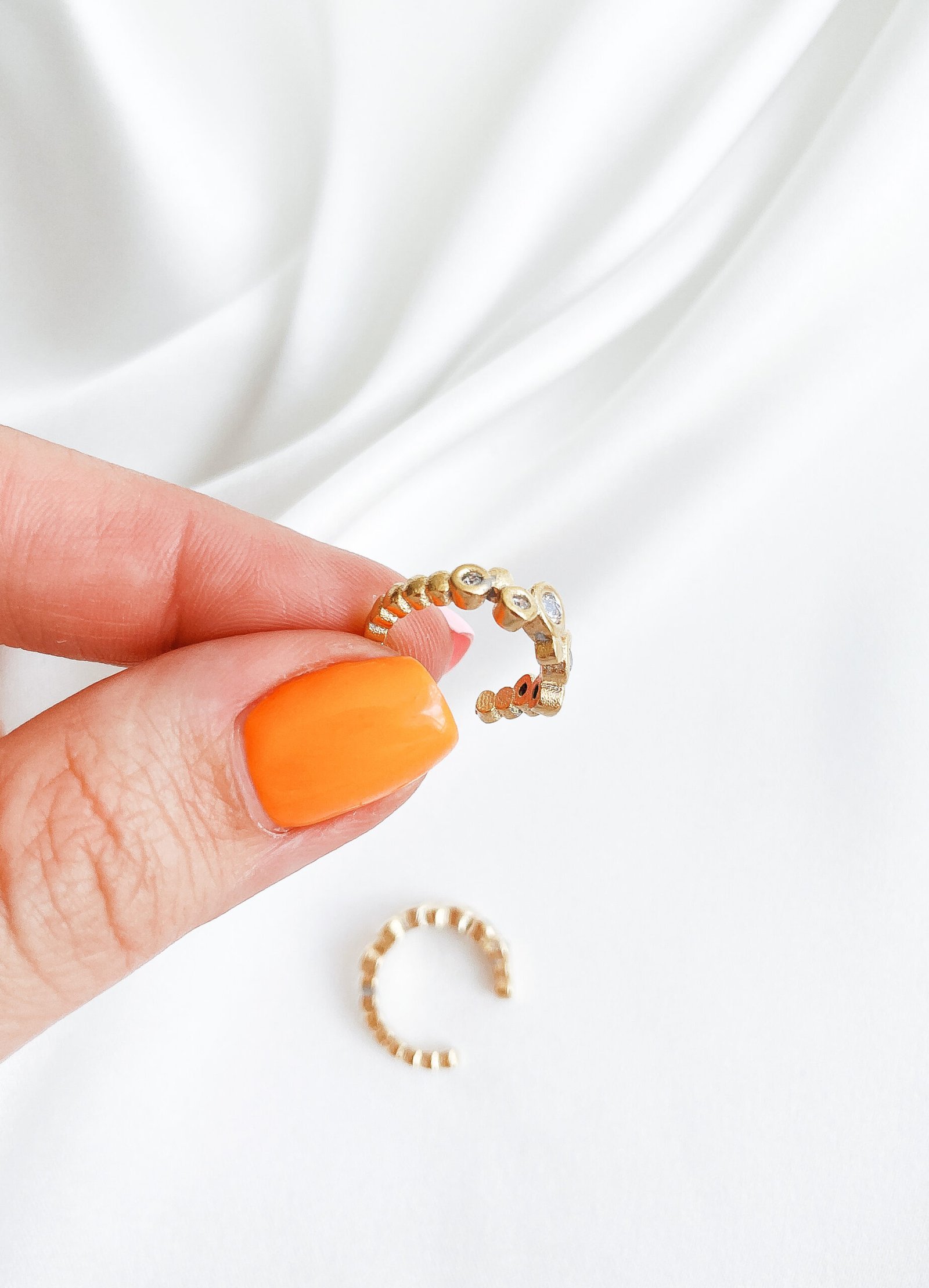 Lengvai derinamas 24k paauksuotas Ear Cuff su cirkonio akutėmis. Puikiai tinka auskarų sluoksniavimui.