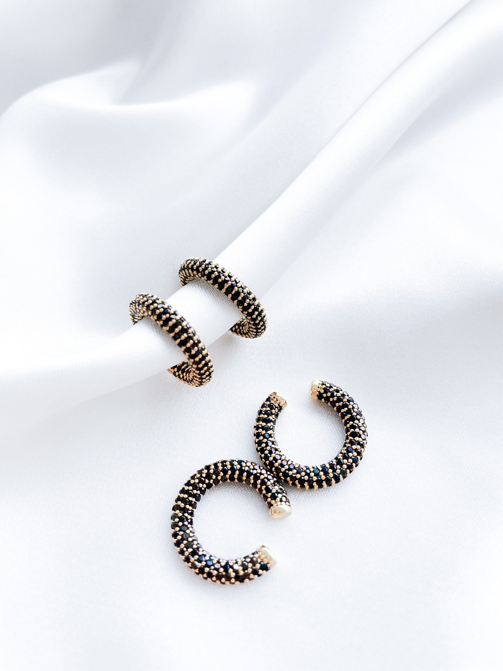 24k paauksuotas Ear Cuff su juodos spalvos cirkonio akutėmis, tinkantis tiek kasdieniam, tiek šventiniam įvaizdžiui. Puikiai tinka auskarų sluoksniavimui.