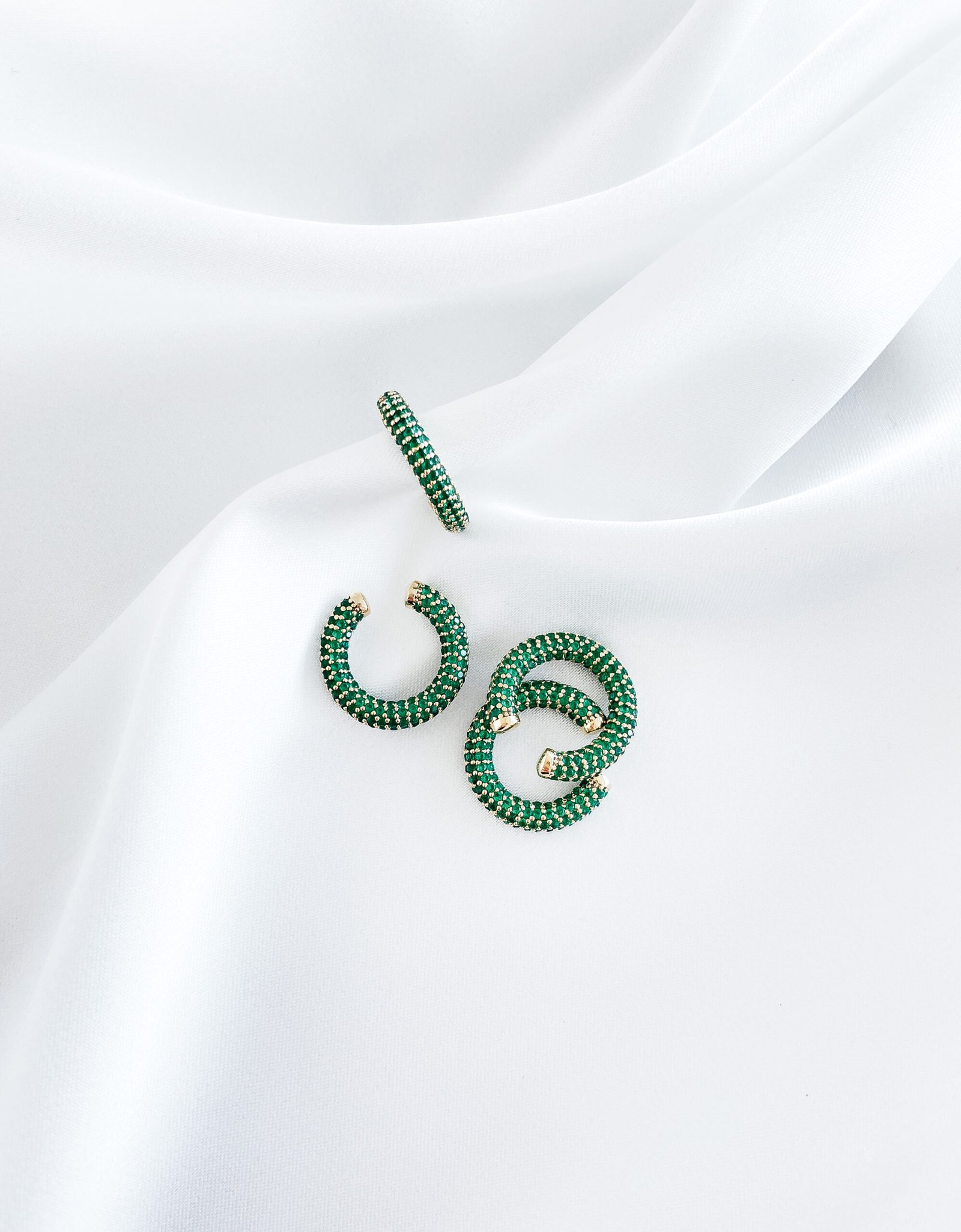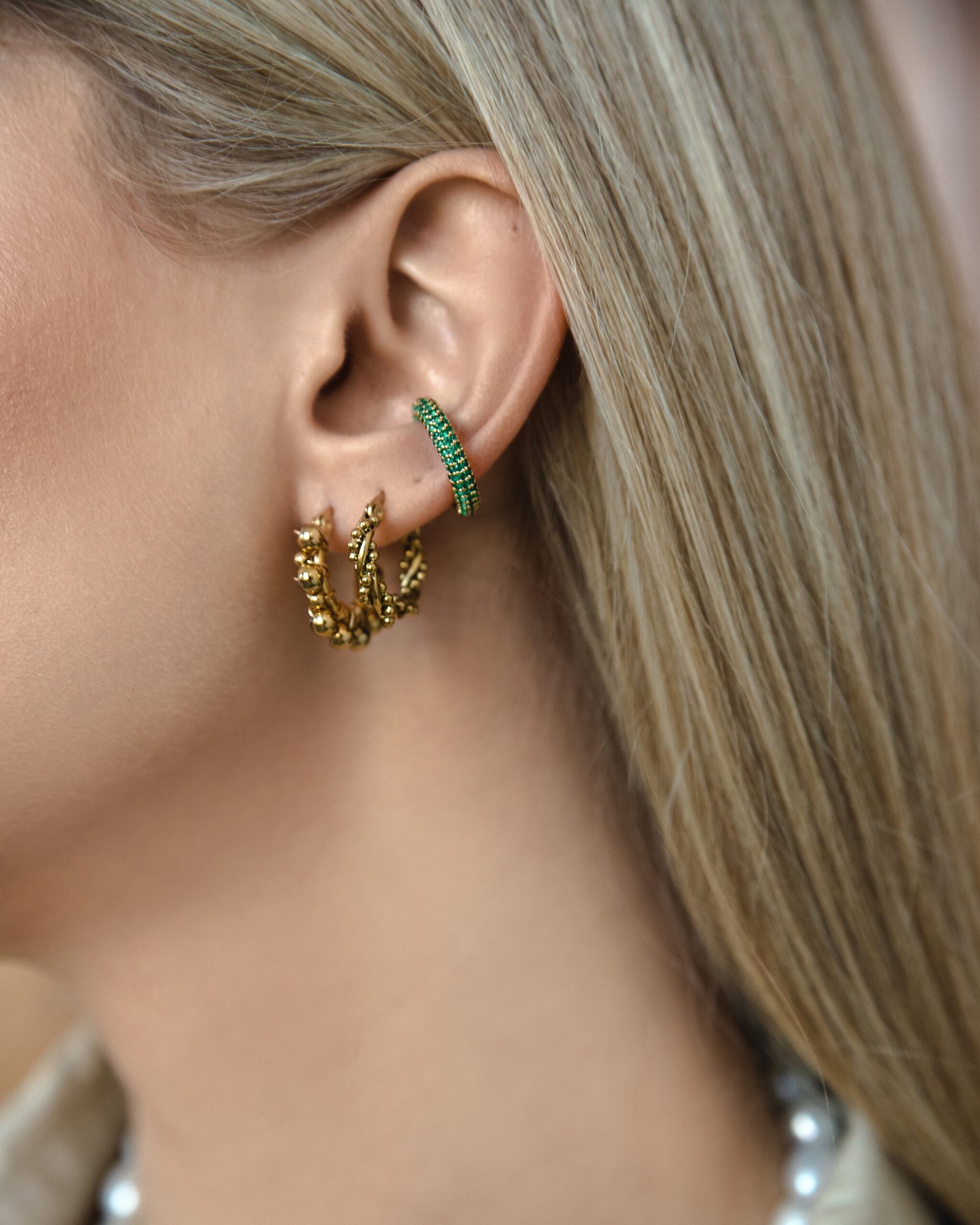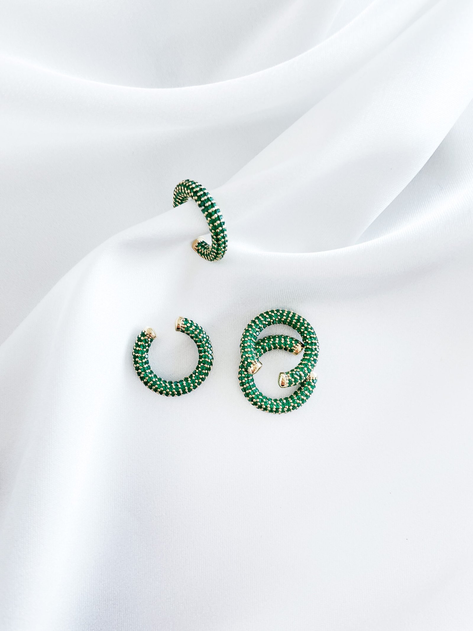 24k paauksuotas Ear Cuff su žalios spalvos cirkonio akutėmis, tinkantis tiek kasdieniam, tiek šventiniam įvaizdžiui. Puikiai tinka auskarų sluoksniavimui.