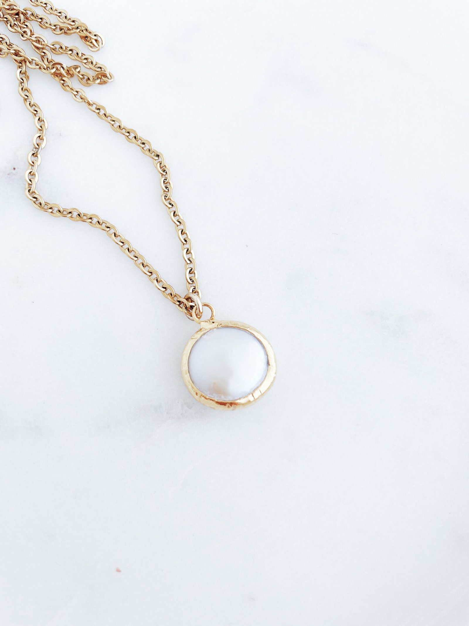 Stilinga ir minimalistinė nerūdijančio plieno grandinėlė su 24k auksu dengtu perlu.