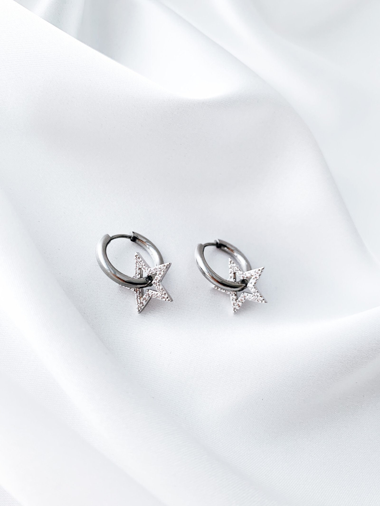 Nerūdijančio plieno auskariukai (hoop earrings) su žvaigždute neliks nepastebėti.