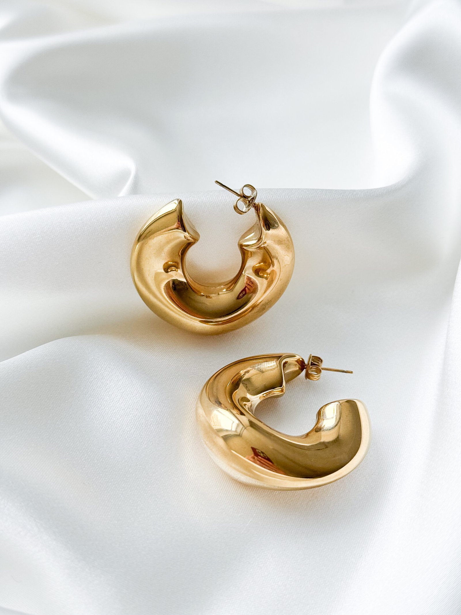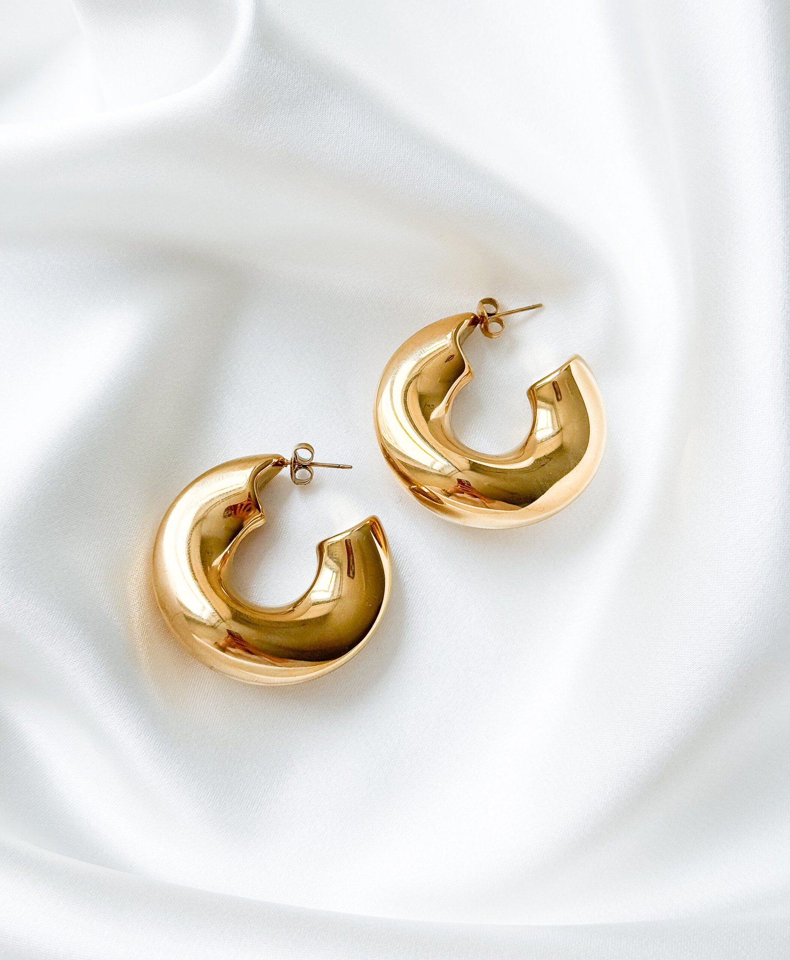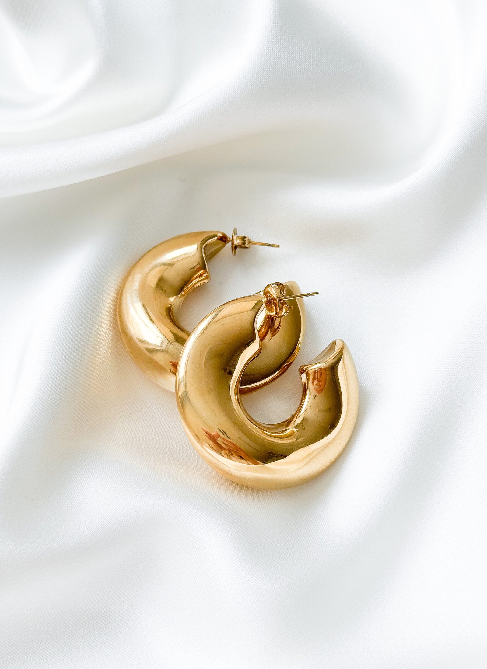 Masyvūs aukso spalvos hoops auskarai sukurti pakeisti Jūsų įvaizdį! Jų masyvi, apvali forma ir glotnus paviršius suteikia stiprų, bet kartu itin elegantišką vizualinį efektą. Šie hoops auskarai puikiai dera su minimalistiniais drabužiais – jie tampa pagrindiniu akcentu, nereikalaujančiu papildomų detalių, sukuria šiuolaikišką, „statement“ tipo įvaizdį. Tuo pačiu šie auskarai idealiai tinka vakariniams deriniams, kai norisi elegancijos su charakteriu.