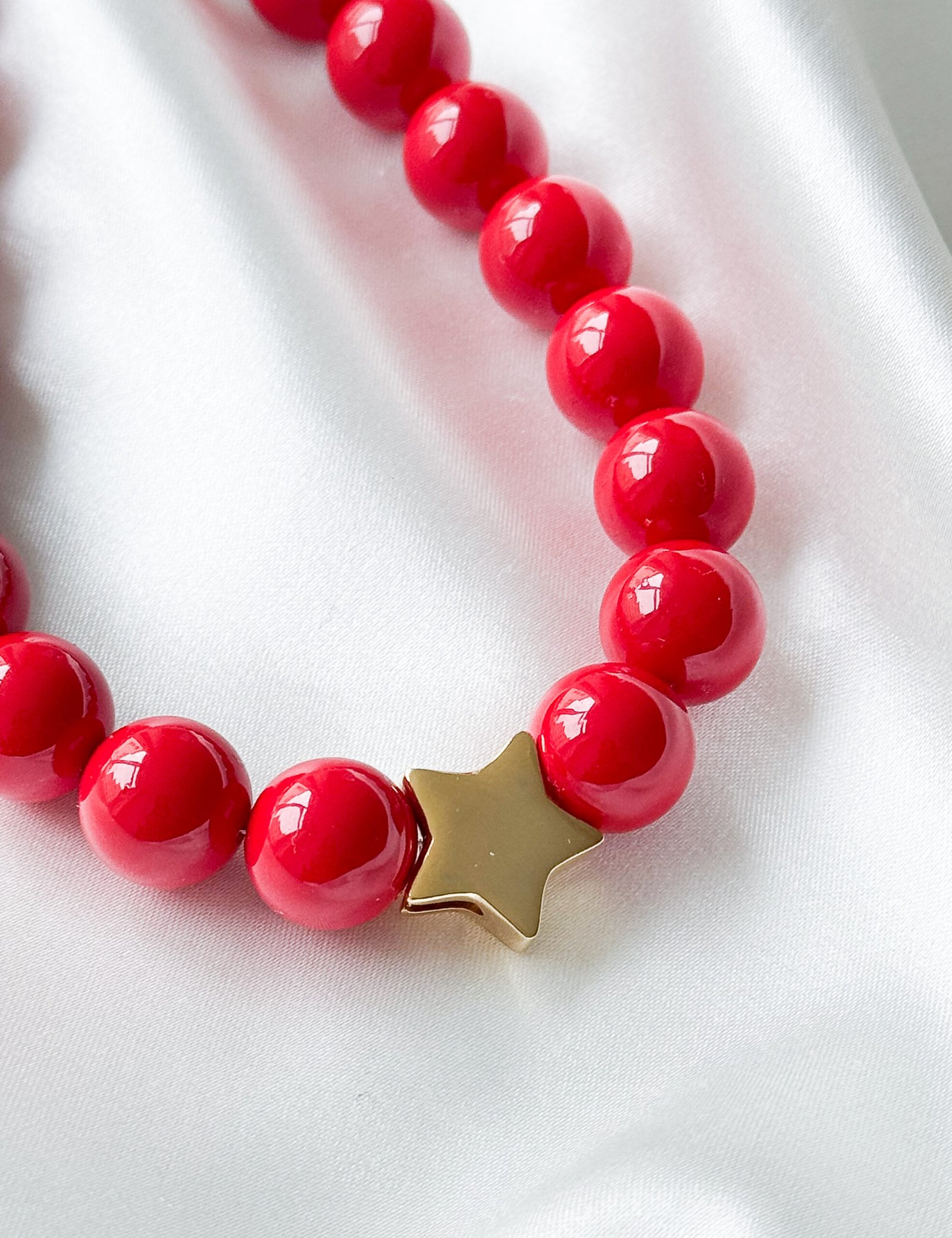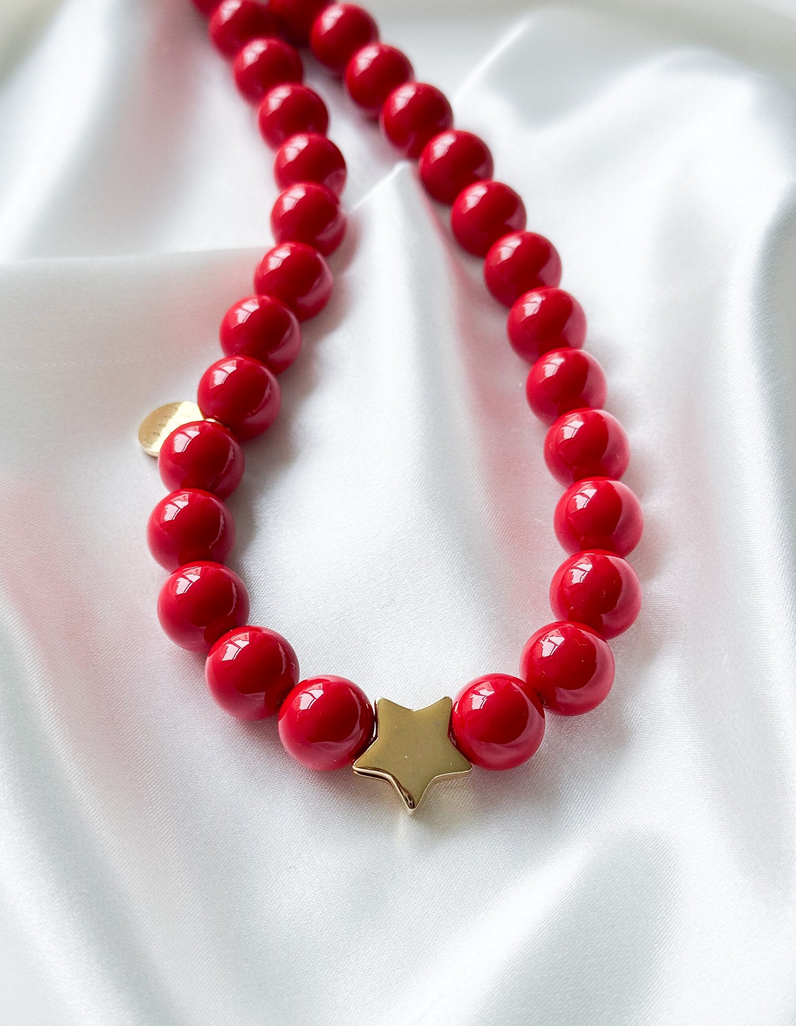 Raudonos spalvos perlų vėrinys su žvaigždutė