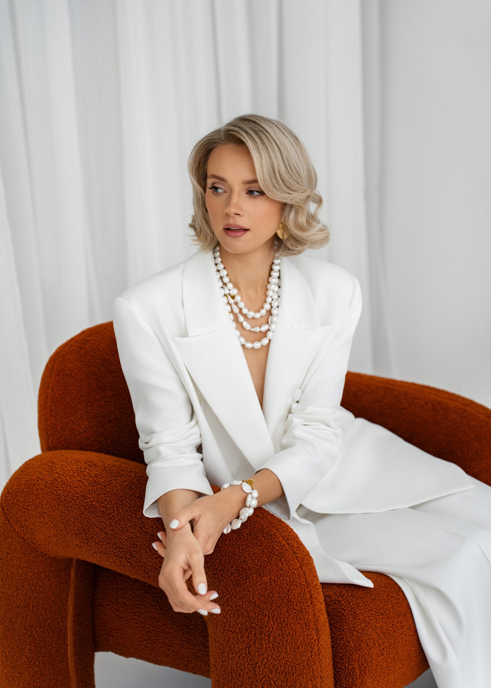 Elegantiškas ir visada madingas trijų eilių gėlavandenių perlų masės vėrinys – tai papuošalas, kuris nepriekaištingai subtiliai išryškina kaklą ir suteikia įvaizdžiui prabangaus rafinuotumo. Kruopščiai atrinkti skirtingo dydžio perlai sukuria lengvai krintančią formą ir suteikia papuošalui išskirtinumą. Šis vėrinys tobulai tinka tiek ypatingoms progoms, tiek elegantiškai kasdienai – derinkite su klasikiniu kostiumu, maxi suknele ar minimalistiniu megztuku.