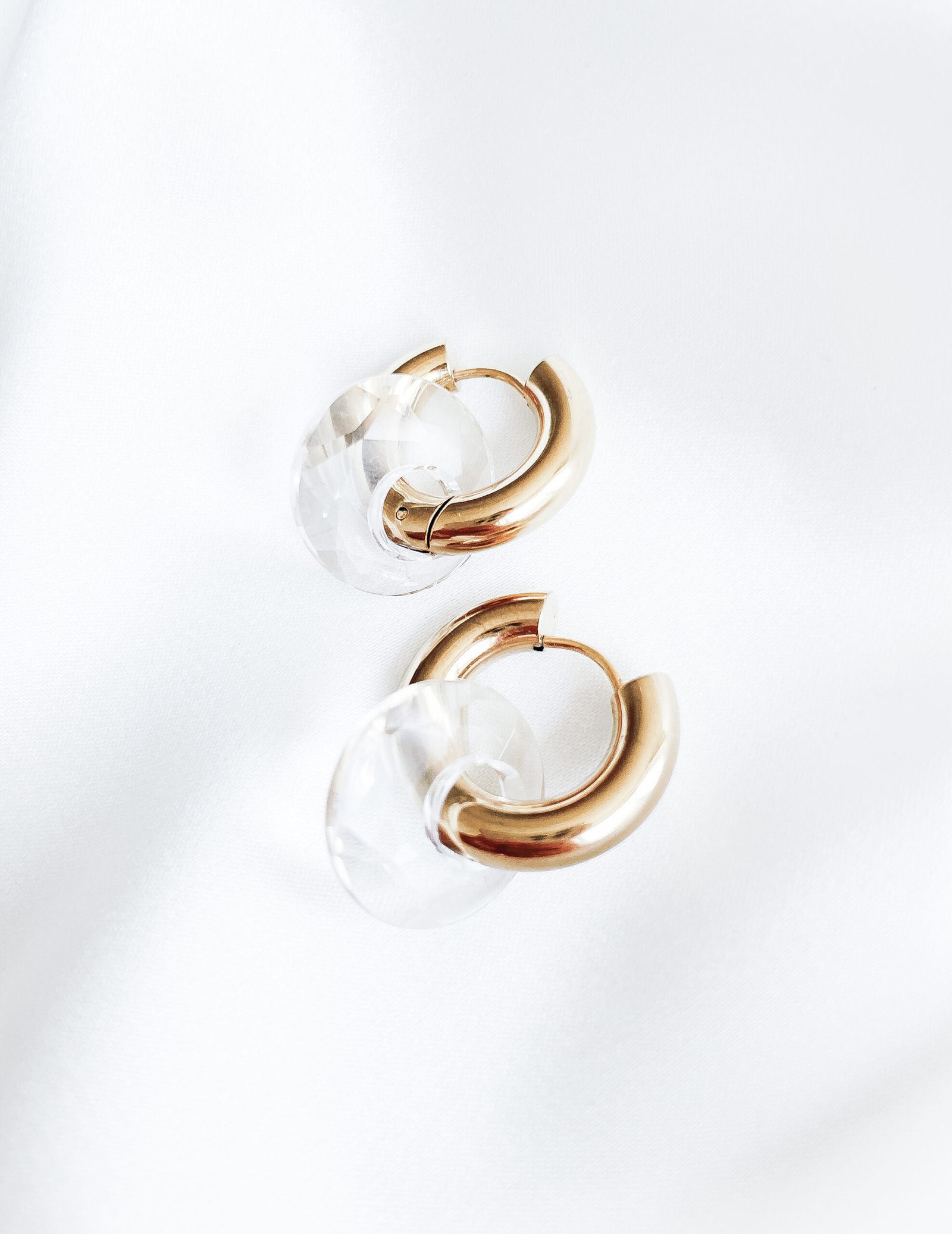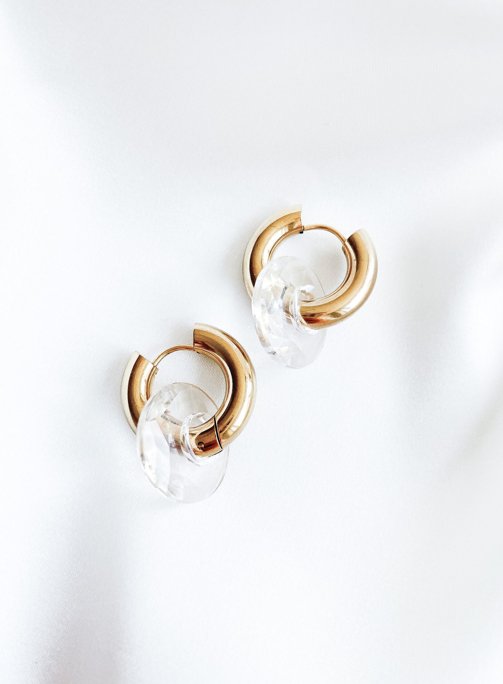 Vienetiniai nerūdijančio plieno hoops auskariukai su skaidriais swarovski kristalais.