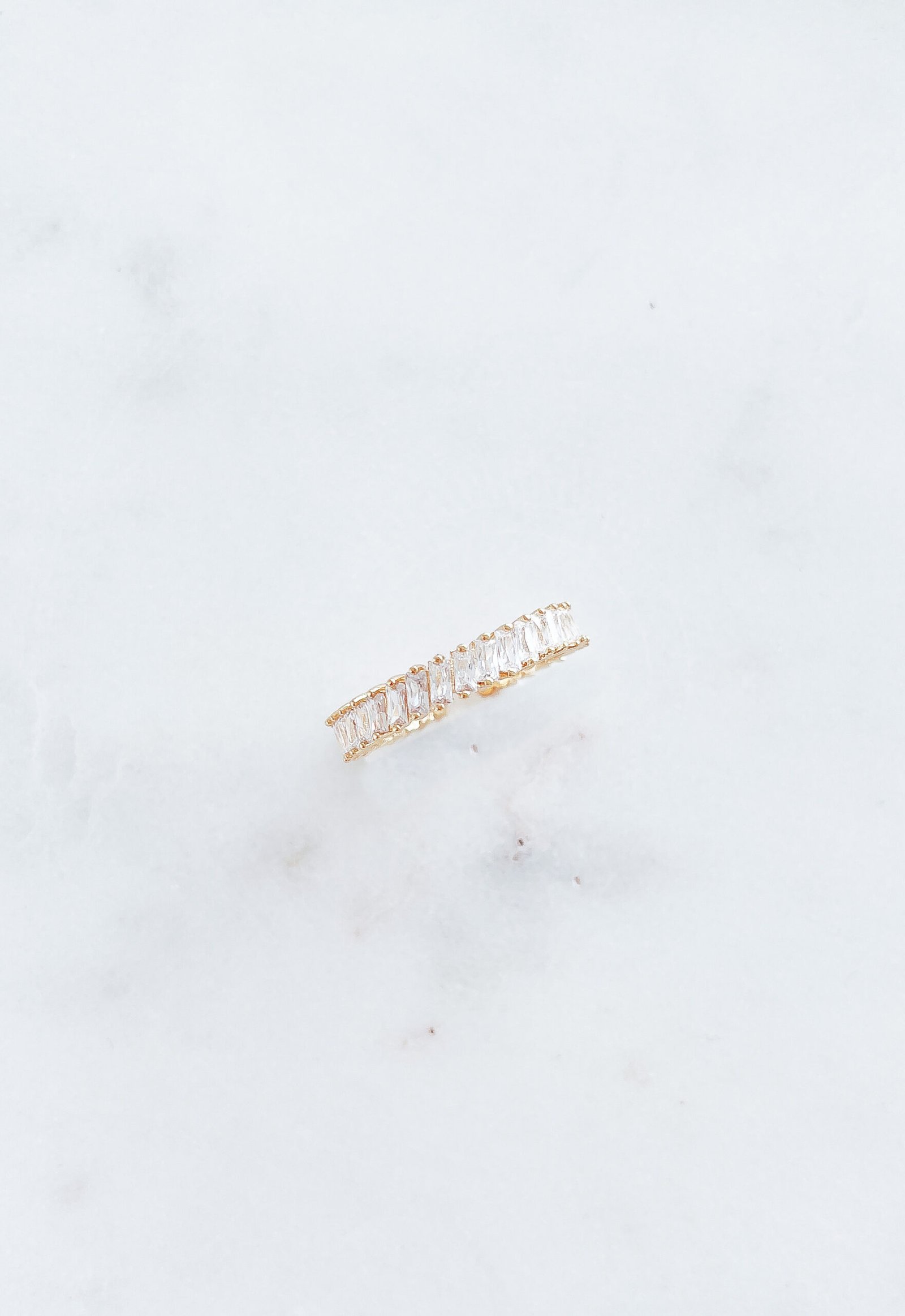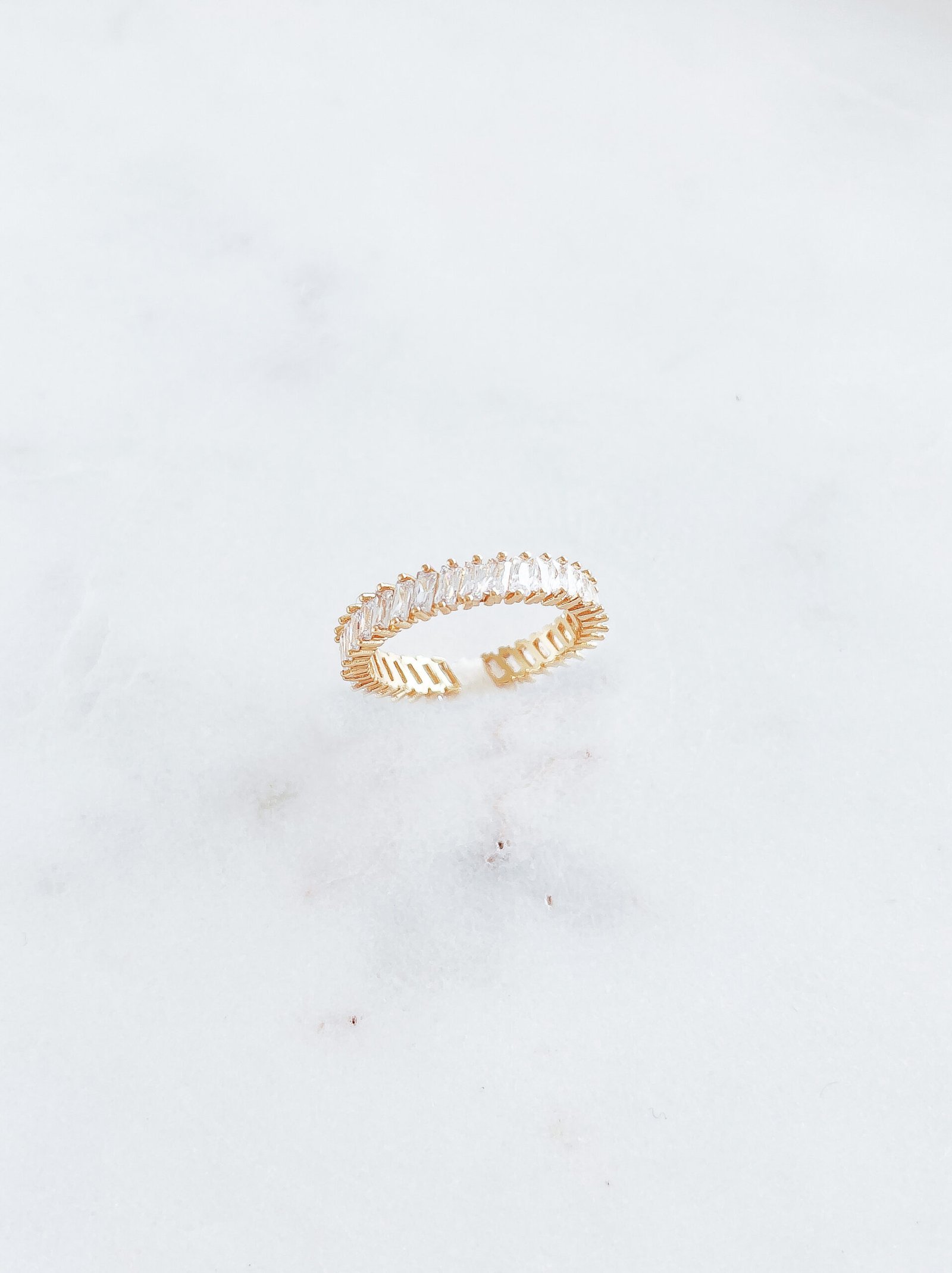 Stilingas ir minimalistinis 24k paauksuotas žiedas su cirkonio akutėmis.